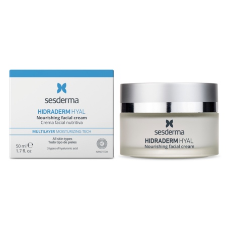 Питательный Sesderma HIDRADERM HYAL Facial cream для кожи лица с тремя видами гиалуроновой кислоты способствует интенсивному увлажнению и питанию. Крем делает кожу более упругой и эластичной, помогает разгладить морщины и визуально сократить поры.
